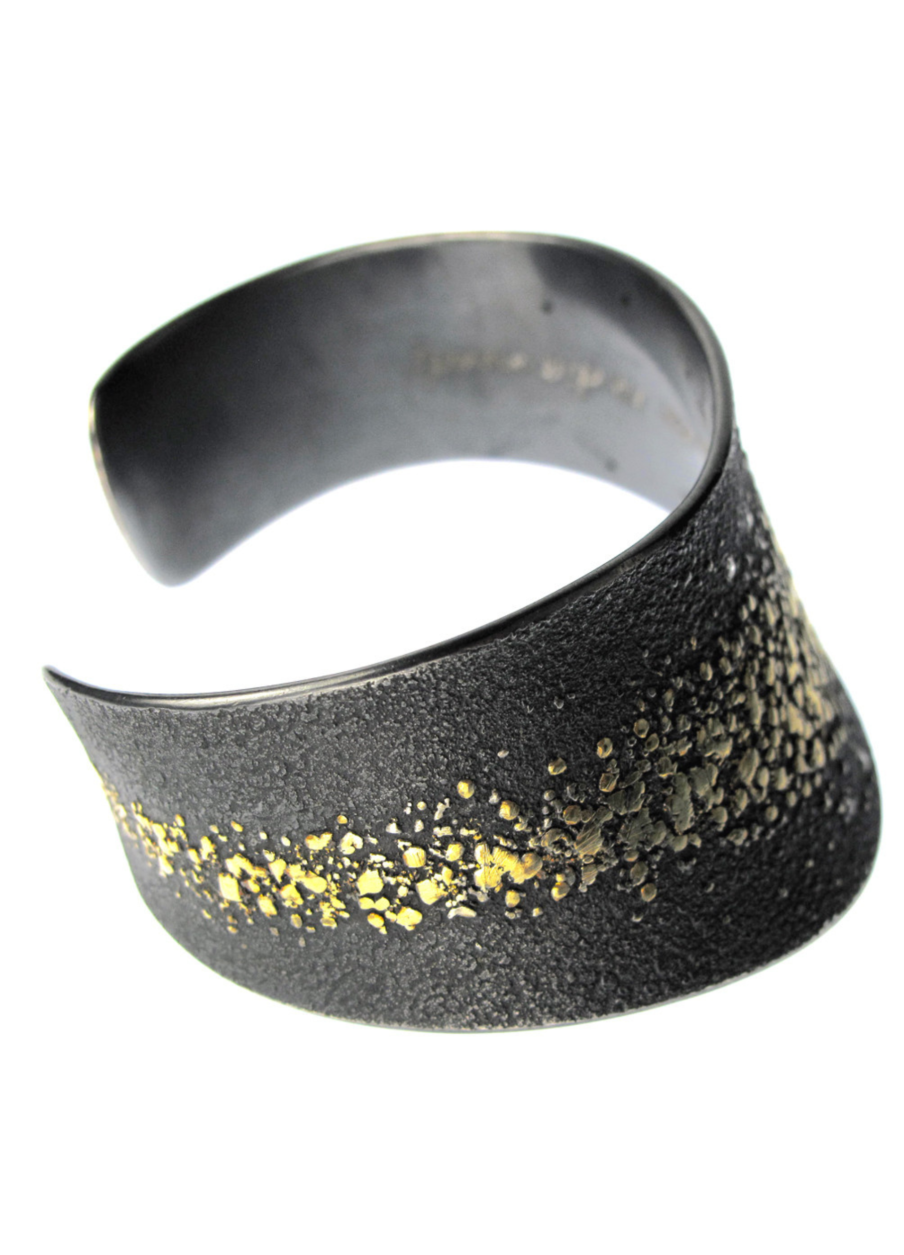 Graffiti Cuff - equal parts chic & street. This stunning cuff bracelet is wearable art, made of 24k gold, sterling silver and scattered with diamonds.