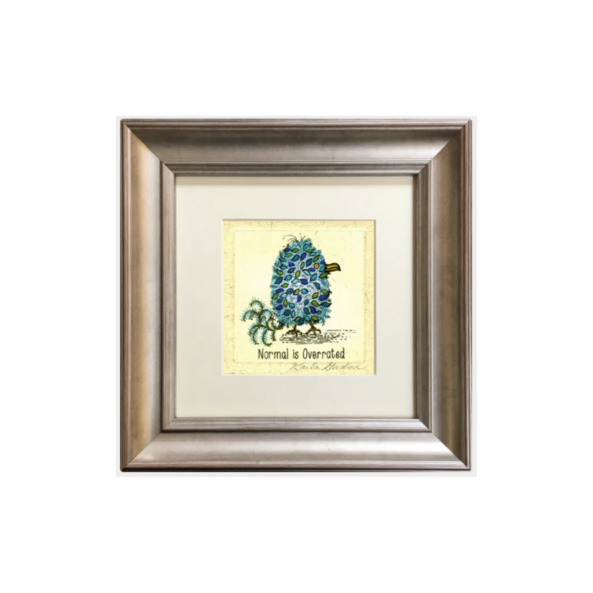 Each unique piece is created by combining intaglio printmaking onto handmade paper and original watercolor painting. Matted in silver leaf frame. 8" square.