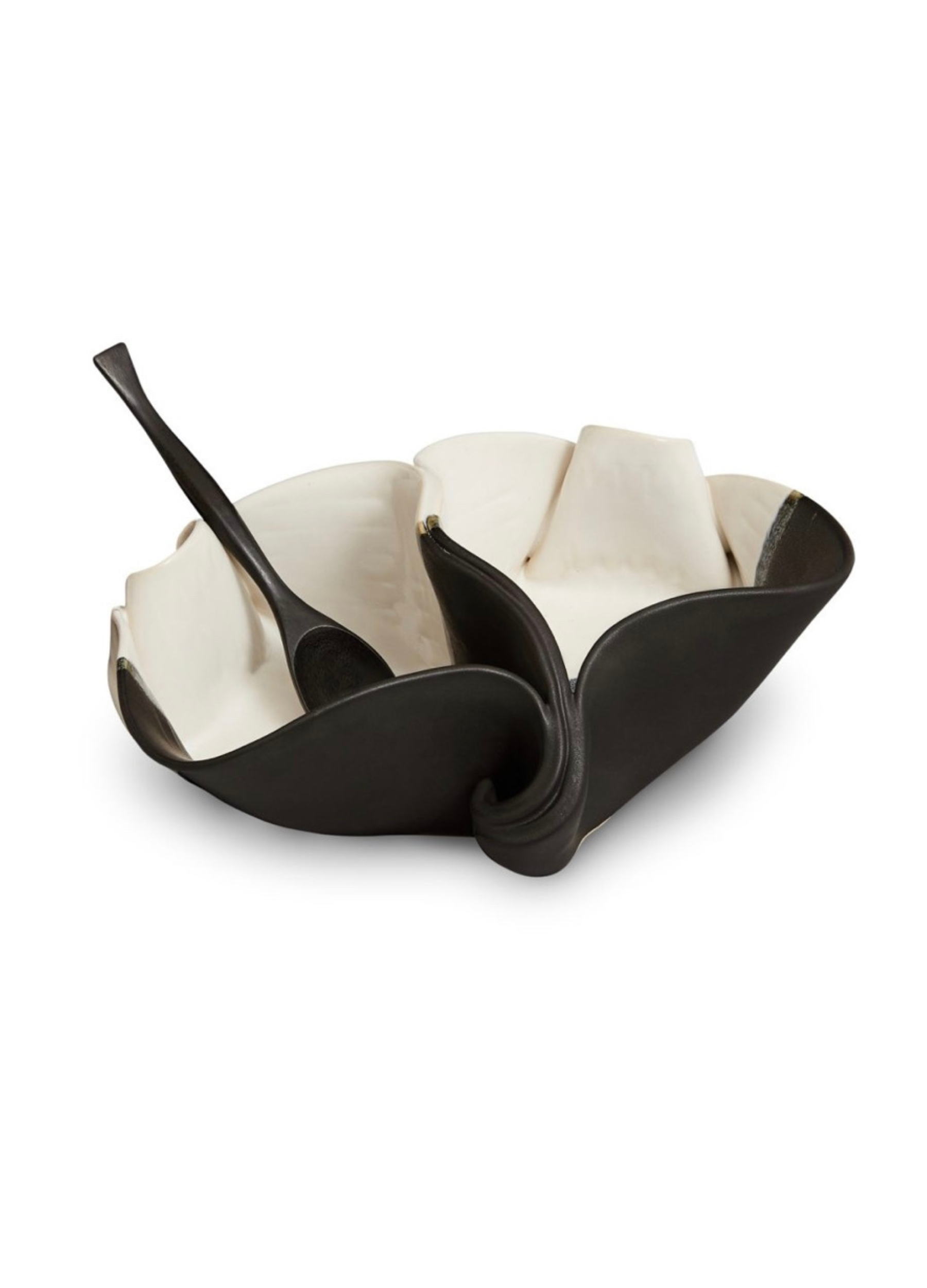 Are you half-full or half-empty? This handmade ceramic pistachio dish is the perfect solution to an old problem! Fill up one side, then as you eat, fill up the other side with empty shells. Comes with a rosewood spoon.