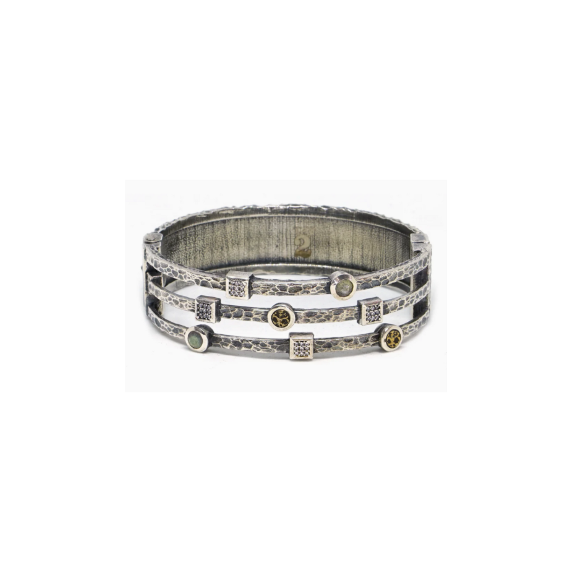 Vintage Silver Danube Labradorite & Crystal 3 Row Bangle